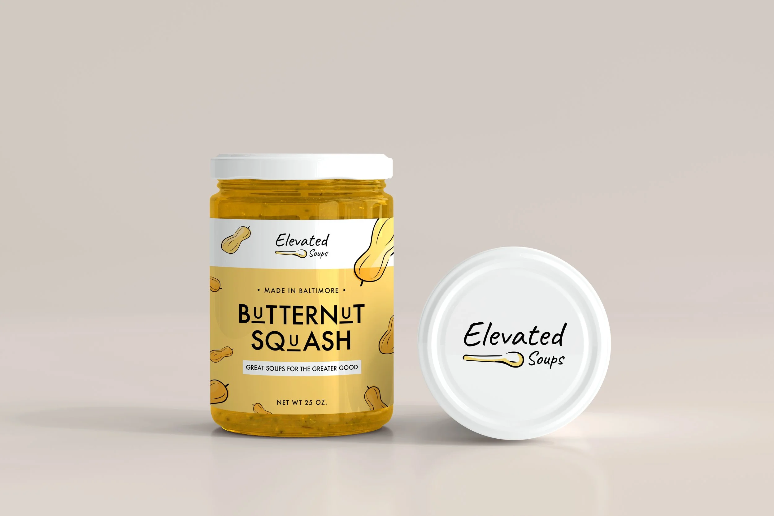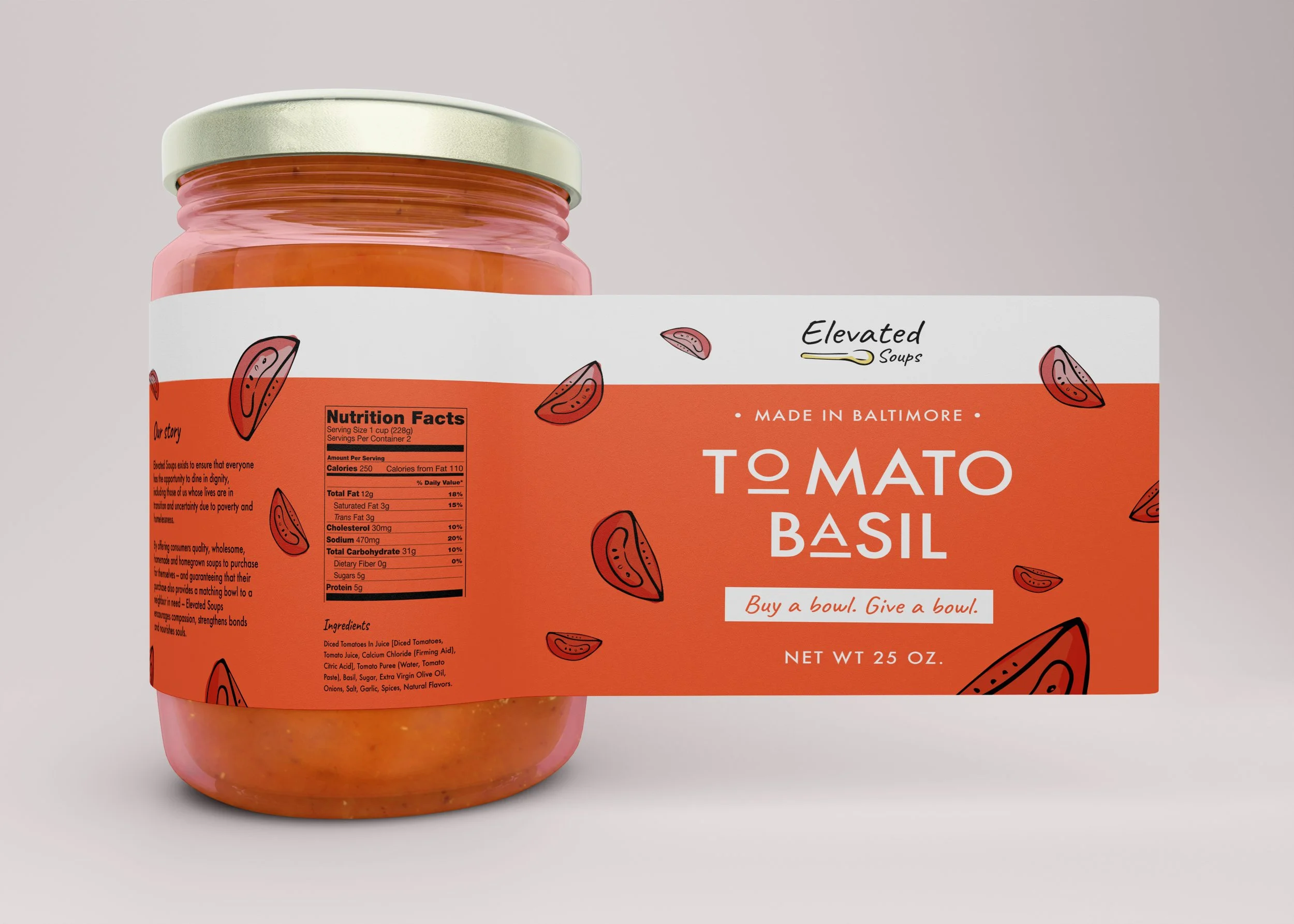 A Baltimore soup kitchen asked me to create packaging for their Elevated Soups. They wanted to create a brand for their soup to sell in the soup kitchen and envisioned an approachable look and feel that would stand out to customers.
