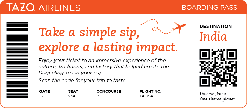 To create an experience for consumers, we created a tea truck where consumers can choose from the regenerative teas and receive a cup with a pattern that reflects that blend. The cup sleeve would have a boarding pass to the origin region and be able to scan the QR code that leads to a video about that country’s culture. In addition to those, we provided a script for a podcast ad.